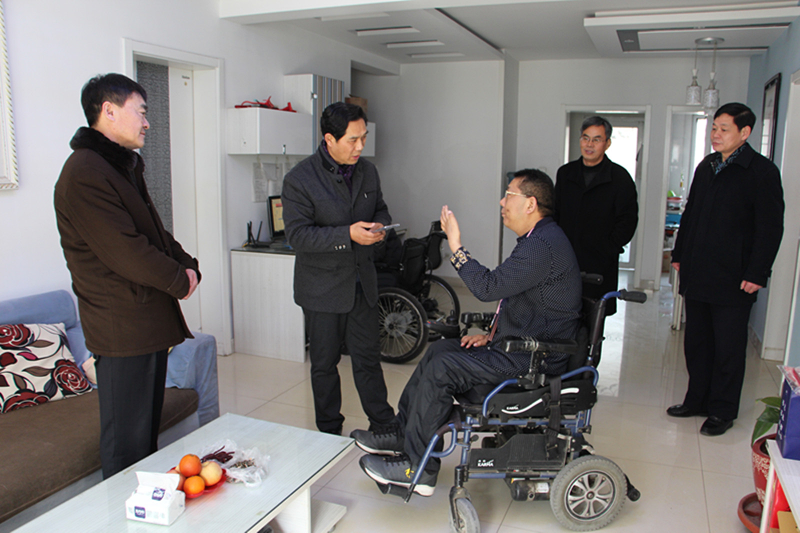 2月7日,济宁市残联副理事长韩广伟一行3人到邹城市走访慰问残疾人。韩广伟首先来到香城镇洪山谷残疾人扶贫基地看望了基地创建人全国劳模王德红,详细了解了扶贫基地的生产运营情况和基地残疾人生活情况,要求要扎实做好扶贫基地建设,带动基地残疾人脱贫致富。随后走访慰问了香城镇北齐村贫困残疾人齐振义,为他送上慰问金和米、油等慰问品,并详细询问了他生活情况和各项助残政策的享受情况。最后,韩广伟看望了钢山街道残疾人电商创业典型孟宏伟,就残疾人电子商务培训和手工制品贸易代工发展与他深入进行了交流,韩广伟对孟宏伟身残志坚,带动残疾人就业给予高度评价,希望孟宏伟把电子商务进一步做大做强,辐射带动更多的残疾朋友实现就业创业。